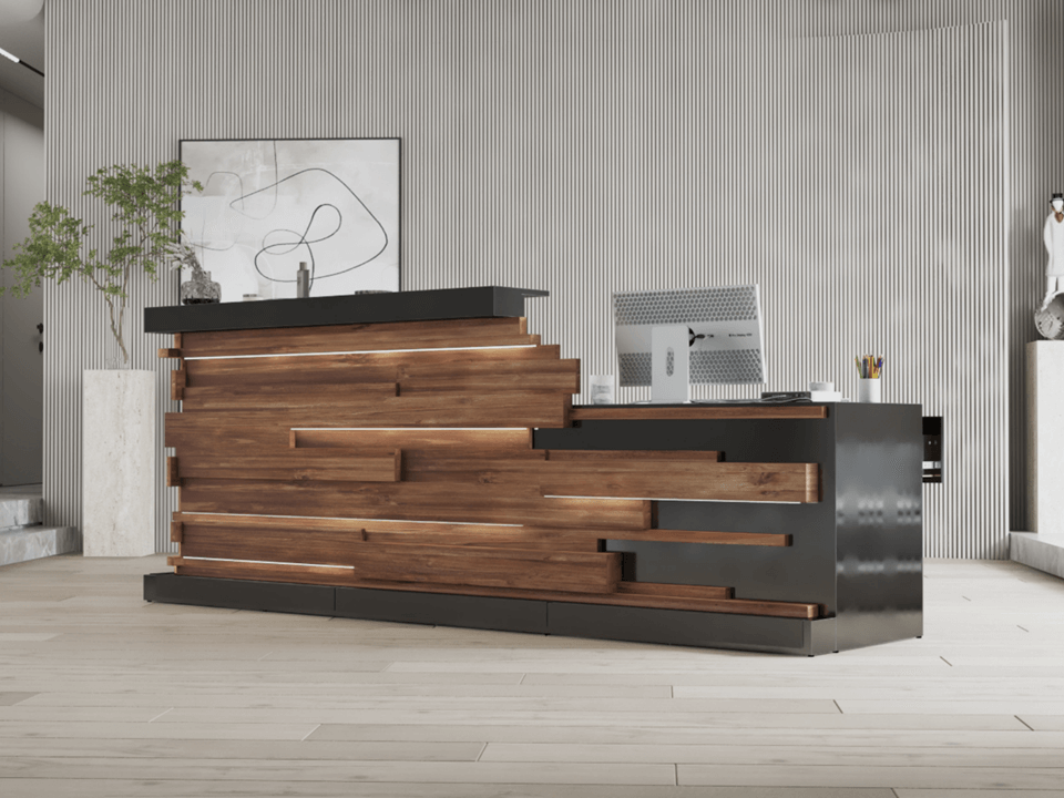 The Fusion Reception Desk finds its ideal home in contemporary spaces that crave a touch of opulence. Designed to captivate, Fusion shines brightest in modern hotels, high-end boutiques, and corporate headquarters. Its fusion of layered wood panels and gentle LED illumination creates an atmosphere of timeless sophistication.